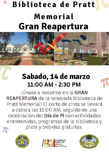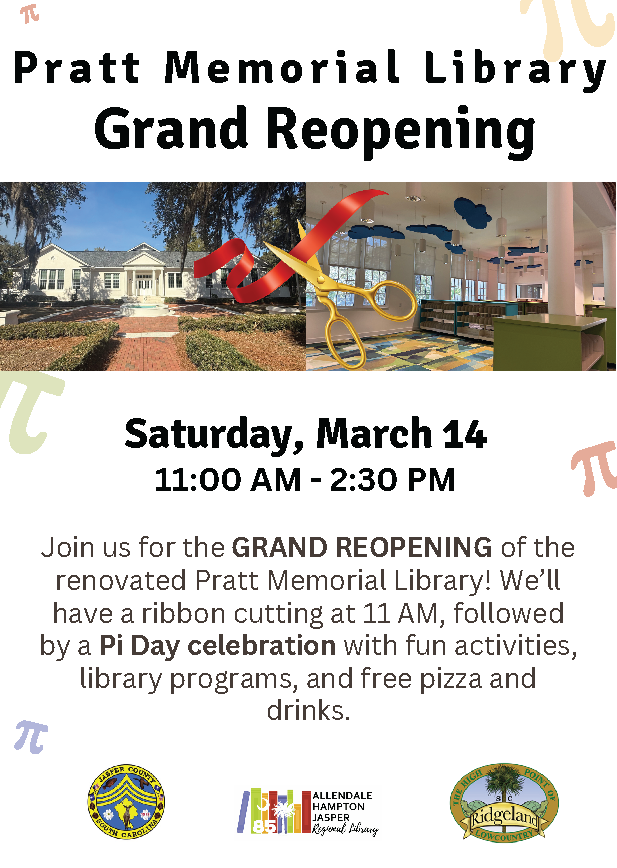 Community News: Pratt Memorial Library Grand Reopening & Pi Day Celebration